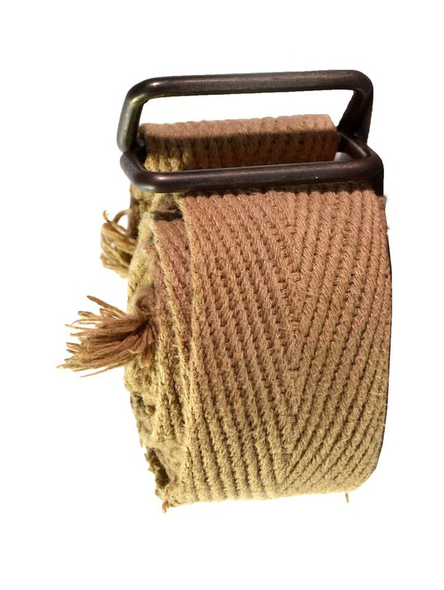Стильный текстильный ремень, декорированный полоской и фирменным логотипом. Застежка на металлическую пряжку. Отличный вариант на каждый день.